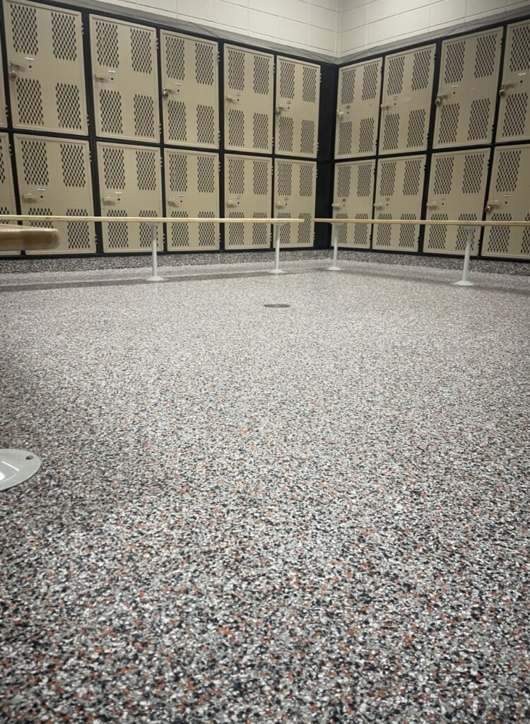 We understand that your school needs flooring that can withstand heavy foot traffic, is easy to clean, and can last for a long time. We use polyurea, a product that has been formulated for our Minnesota weather, making it more durable and flexible than an epoxy product. It not only withstands heavy traffic, but it is waterproof, and it never yellows because it is UV resistant, unlike most epoxy products.